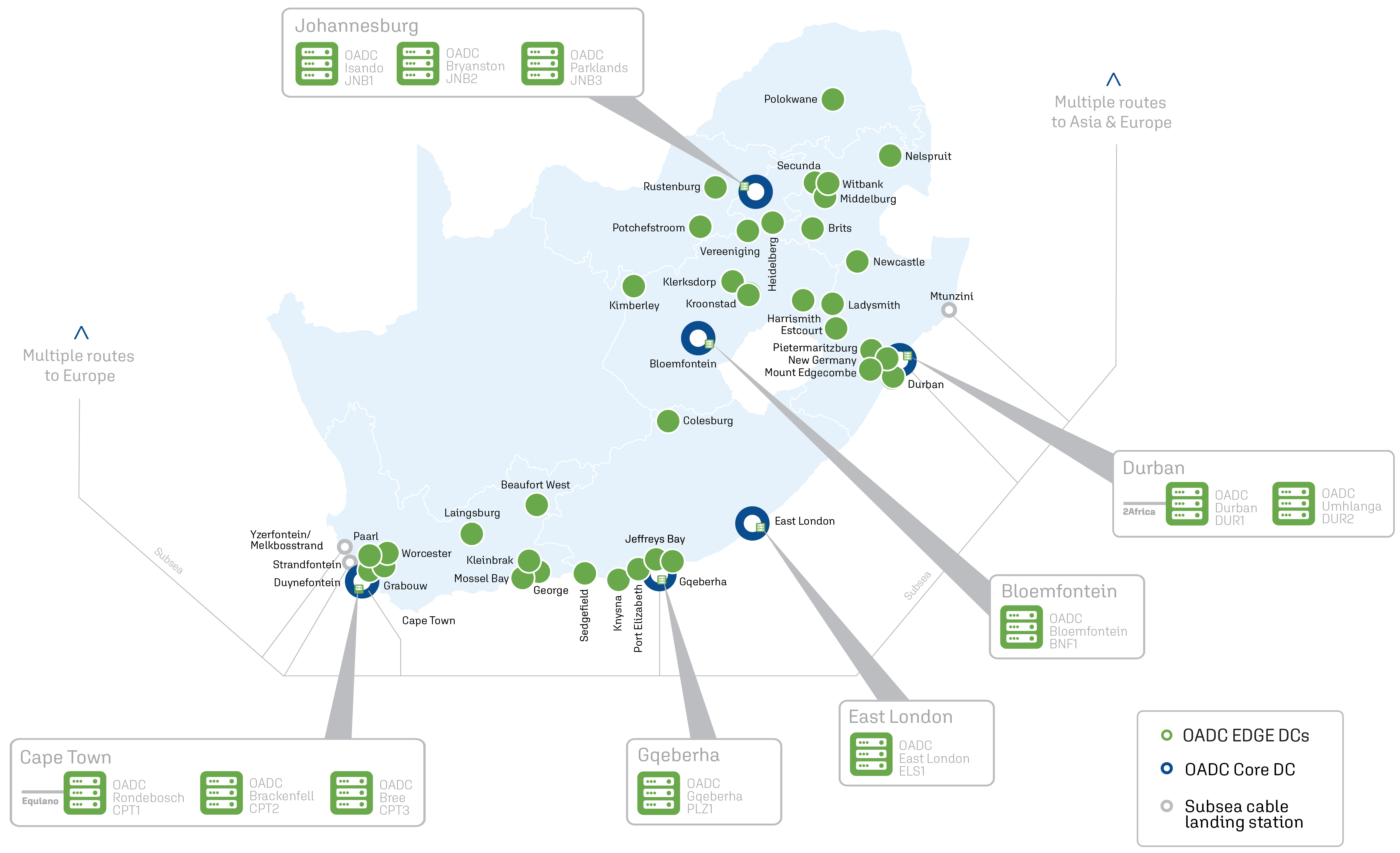 Core-to-edge architecture comprising 9 hyperscale Tier-III data centres, interconnected across multiple fibre networks and complemented by >30 Edge facilities.